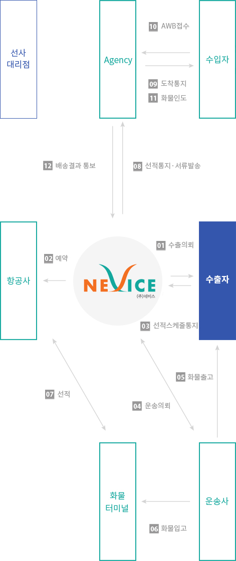 항공 수출·입과 관련된 제반업무(Pick-up Service, Packing, 보관, 통관, 보험중개 서비스 등)에 대해 차별화되고 전문화된 서비스로 물류비용의 절감 및 정확하고 신속한 서비스를 제공합니다.